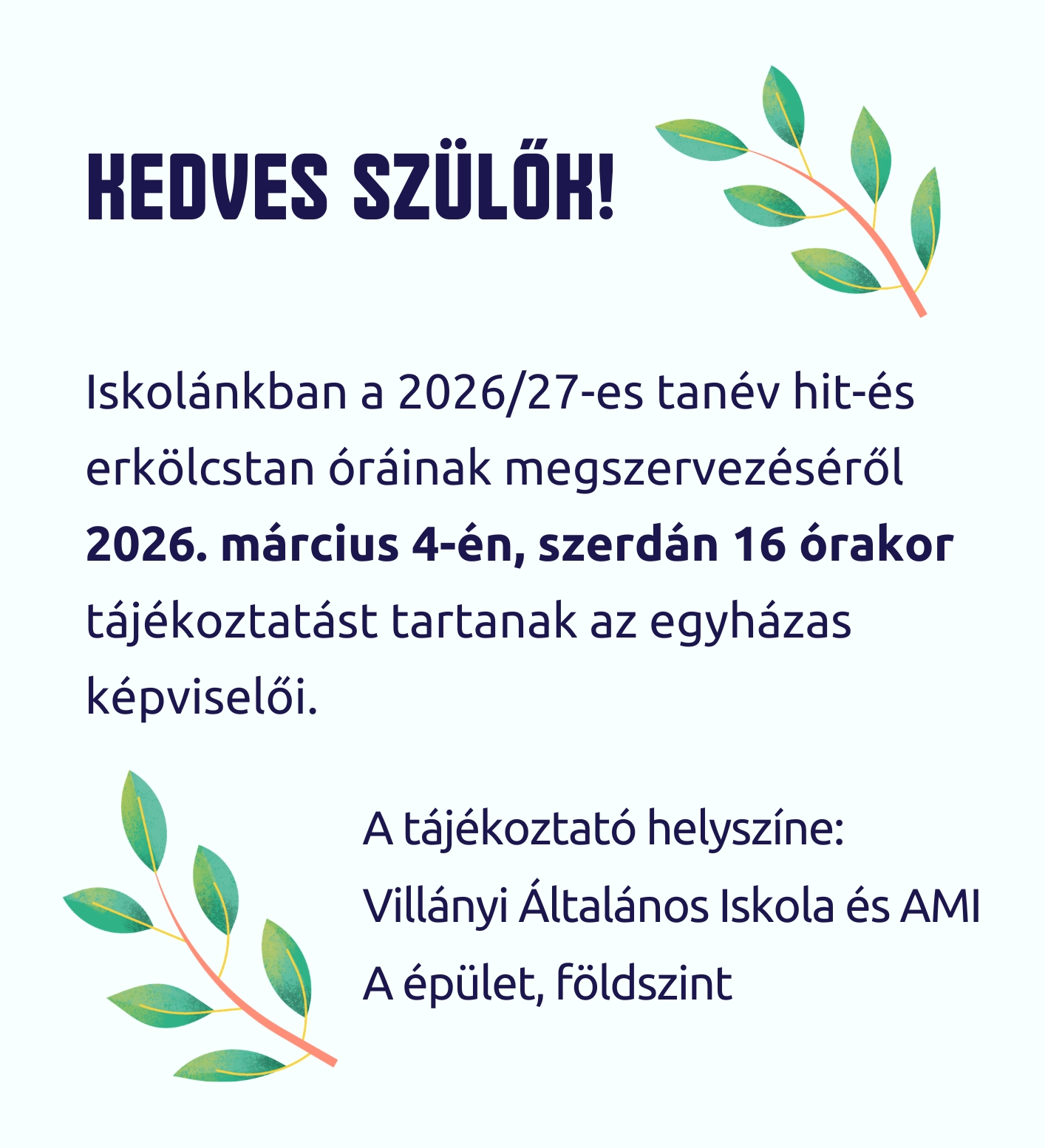 Szülői tájékoztatás